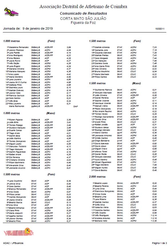 Parabéns e um obrigada à Associação Distrital De Atletismo De Coimbra e a todos os intervenientes e parceiros deste evento: Câmara Municipal da Figueira da Foz; Cruz Vermelha Portuguesa- delegação da Figueira da Foz; FigueiraTV; Rogério Neves (locução); Escolas e Agrupamentos deste Concelho, e principalmente aos atletas, por mais um Corta Mato de São Julião realizado com sucesso!