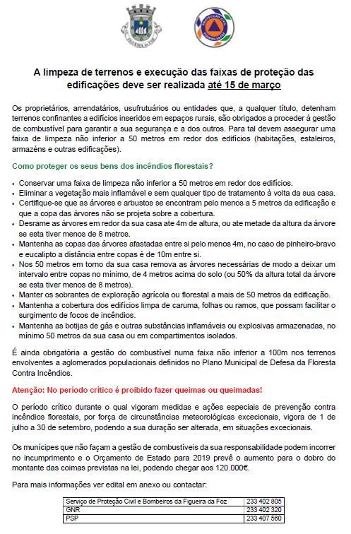 Limpeza e execução das faixas de proteção das edificações até 15 de março.